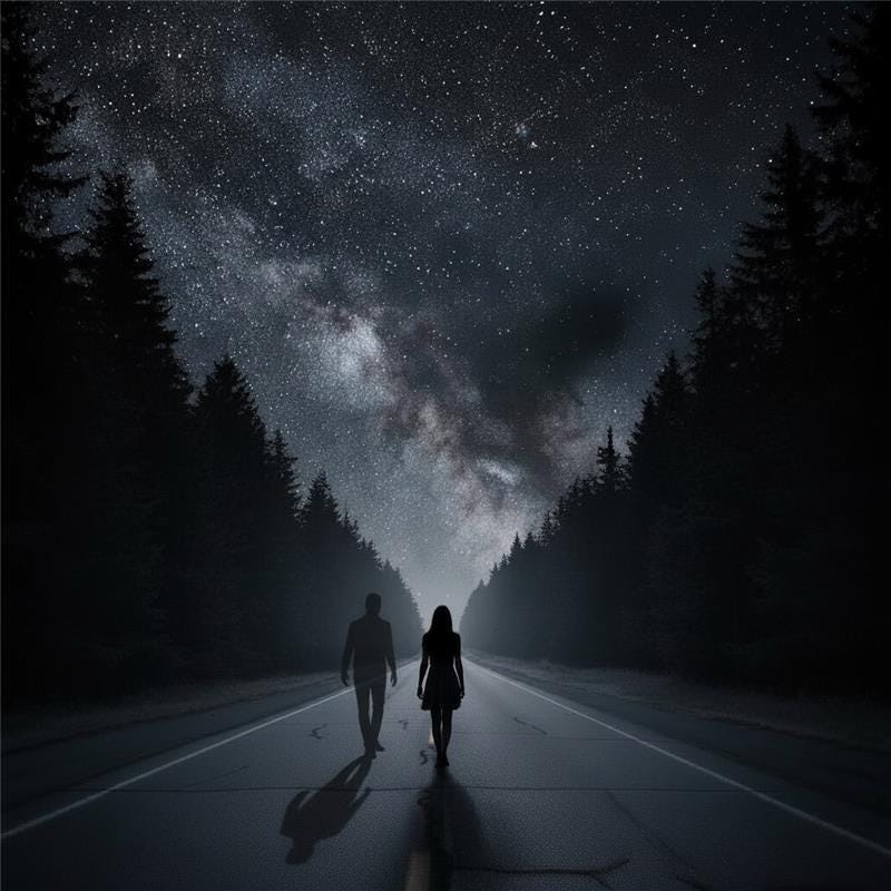 The rustling begins again, only this time, it sounds as though it has drawn itself closer. The shift in the air is palpable, not blood, but faint, sharp, and metallic. When she looks around again, she can’t see anything but the stretch of road, stars, and shadows of trees waving in the night. She slips off her shoes and holds a heel between her fingers in each hand.